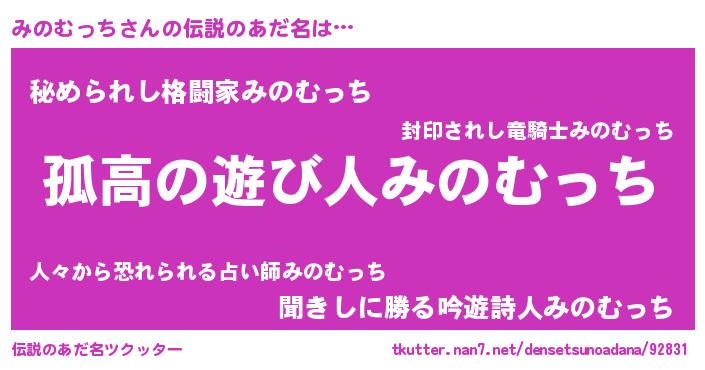 | ヒーロー風カッコイイあだ名 | 『暗黒騎士ミノ』『ネオミノムッチ』 |