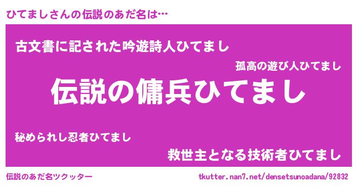 | ヘコむあだ名 | 『ひてもー』『ひてまし(笑)』 |