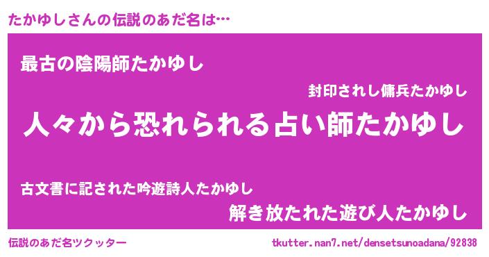 | 女子向けラノベタイトル風あだ名 | 『たかゆしなんてお断りですっ。』 |