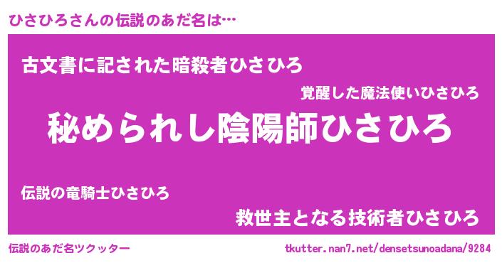 | 男性向けラノベタイトル風あだ名 | 『魔弾の王とひさひろ』『緋弾のヒサヒロ』 |