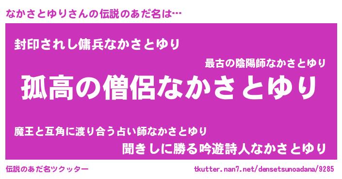 | 女子向けラノベタイトル風あだ名 | 『なかさとゆりは平凡を望む』 |