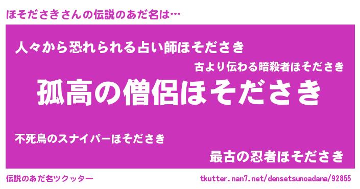 | 胡散臭い通販商品みたいなあだ名 | 『信頼と実績のネックレス…その名も「ほそださき」』 |