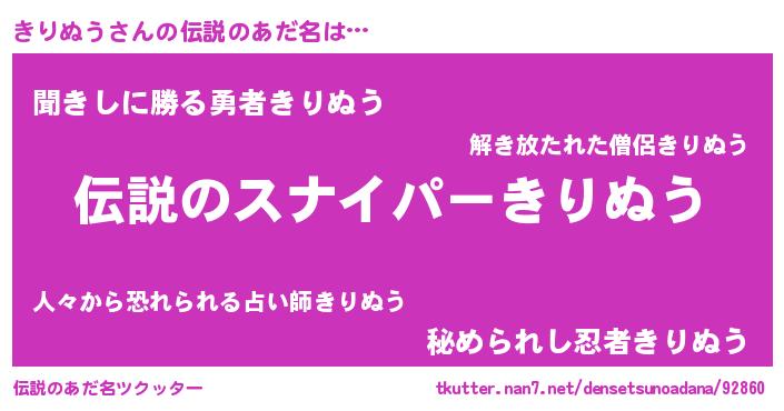 | 胡散臭い通販商品みたいなあだ名 | 『必ず成功する霊験あらたかなお札…その名も「きりぬう」』 |