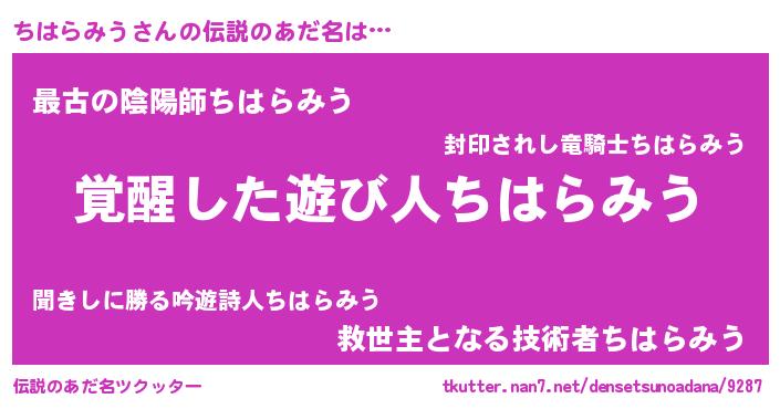 | 意味不明あだ名 | 『とにかく怪しいちはらみう』 |