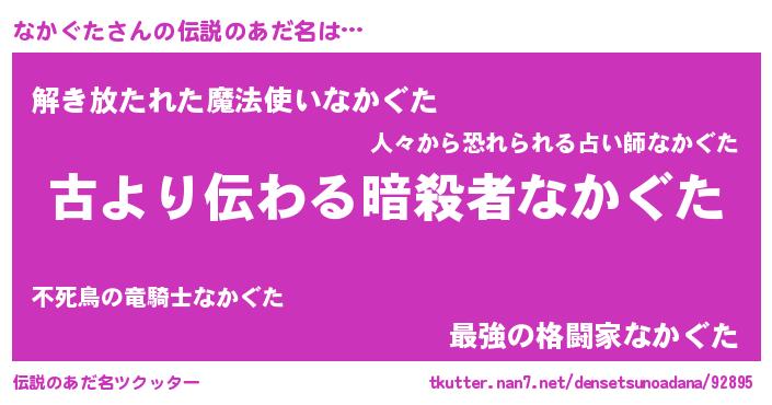 | 意味不明あだ名 | 『もやし科なかぐた属』『自称なかぐた』 |