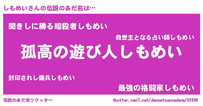 | 意味不明あだ名 | 『自称しもめい』『永久保存しもめい』 |
