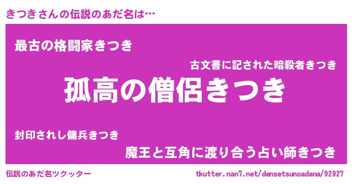 | 意味不明あだ名 | 『自称きつき』『とにかく怪しいきつき』 |