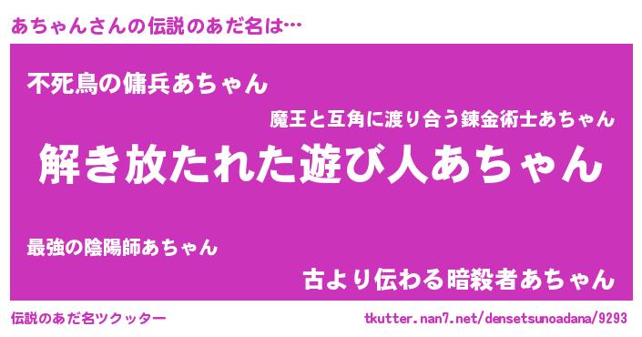 | ヒーロー風カッコイイあだ名 | 『魔戒騎士アチ』『スーパーアチャン』 |