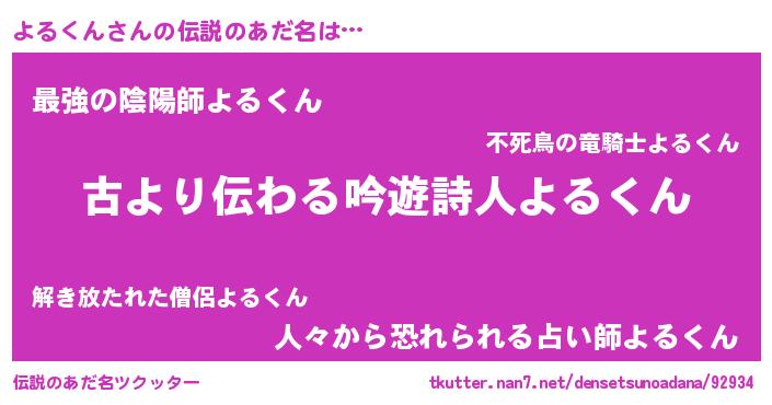 | 意味不明あだ名 | 『永久保存よるくん』 |