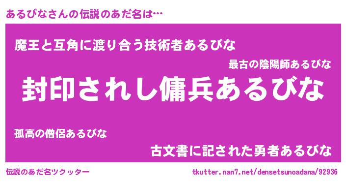 | 男性向けラノベタイトル風あだ名 | 『あるびなに滅ぼされるだけの簡単なお仕事です』 |