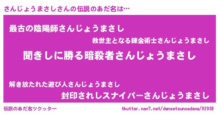 | 意味不明あだ名 | 『永久保存さんじょうまさし』 |