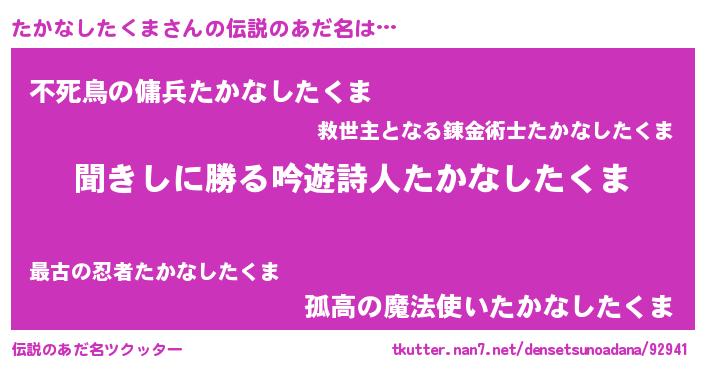 | ヒーロー風カッコイイあだ名 | 『仮面タカダー』『ネオタカナシタクマ』 |