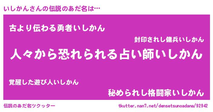 | ヒーロー風カッコイイあだ名 | 『正義の使者いしかん』『ネオイシカン』 |