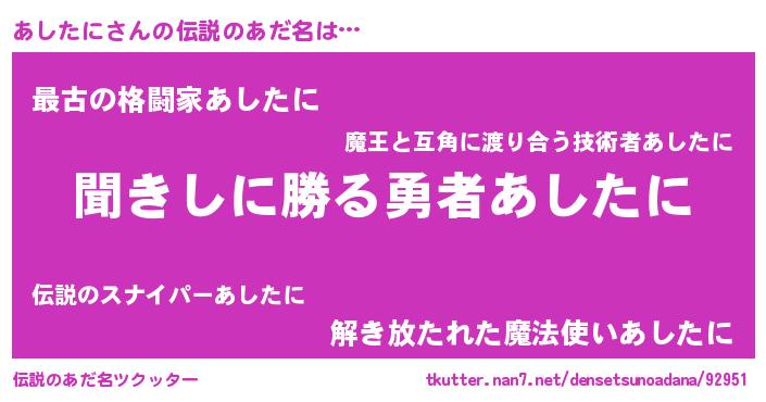 | 意味不明あだ名 | 『自称あしたに』『永久保存あしたに』 |