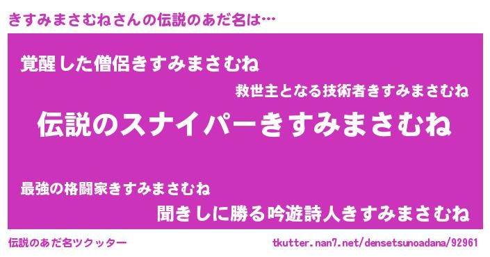| 胡散臭い通販商品みたいなあだ名 | 『必ず成功する霊験あらたかなお札…その名も「きすみまさむね」』 |