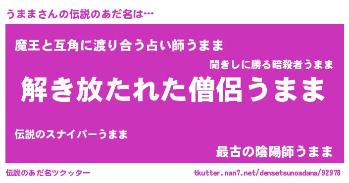 | ポケモン風あだ名 | 『ウーマイ』『ヒウママ』『ゼニウマ』 |