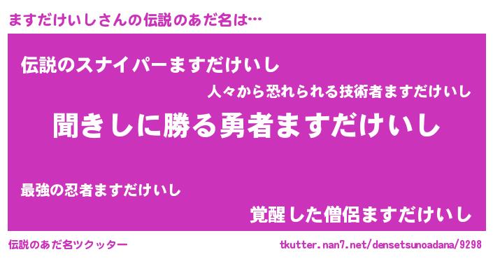 | ヘコむあだ名 | 『ますだけいし(震え声)』『ますにゅー』 |