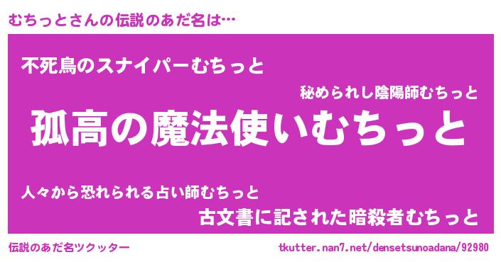 | ヒーロー風カッコイイあだ名 | 『黄金騎士ムチ』『サイバー戦士ムチット』 |