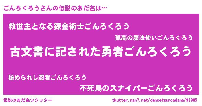 ヘコむあだ名 | 『ごんろくろう(震え声)』『ごんっふぃ~』 |