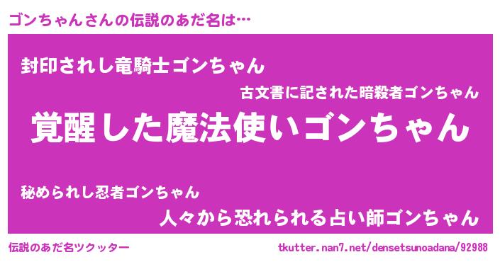 | ヒーロー風カッコイイあだ名 | 『天弓騎士ゴン』『仮面ゴンダー』 |