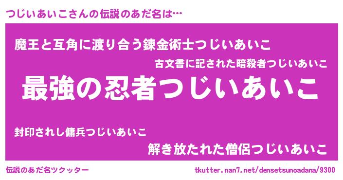 | 意味不明あだ名 | 『自称つじいあいこ』 |