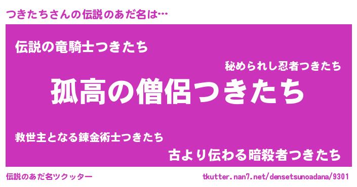 | ヒーロー風カッコイイあだ名 | 『暗黒騎士ツキ』『スーパーツキタチ』 |