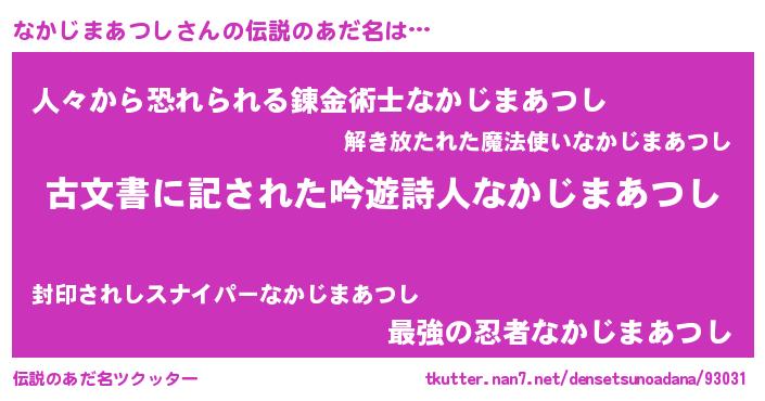 | ヒーロー風カッコイイあだ名 | 『ネオナカジマアツシ』『仮面ナカダー』 |