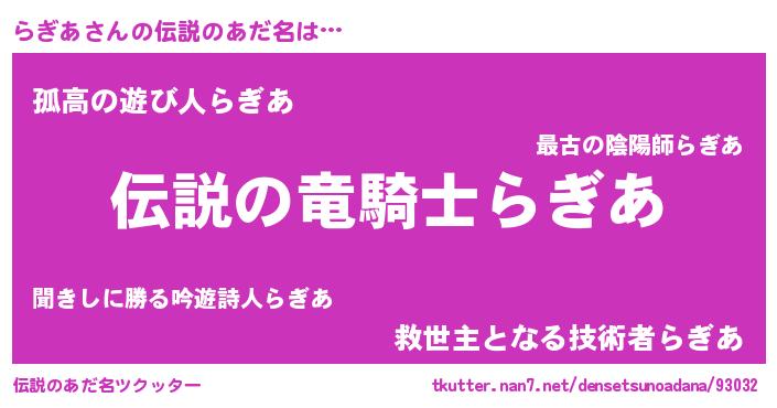 | 意味不明あだ名 | 『自称らぎあ』『ペロリンらぎあ』 |