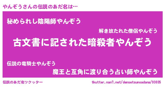 | 胡散臭い通販商品みたいなあだ名 | 『前代未聞の健康食品…その名も「やんぞう」』 |