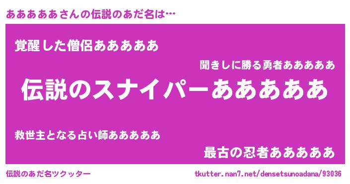 | ヒーロー風カッコイイあだ名 | 『超時空戦士アアアアア』『仮面アアダー』 |