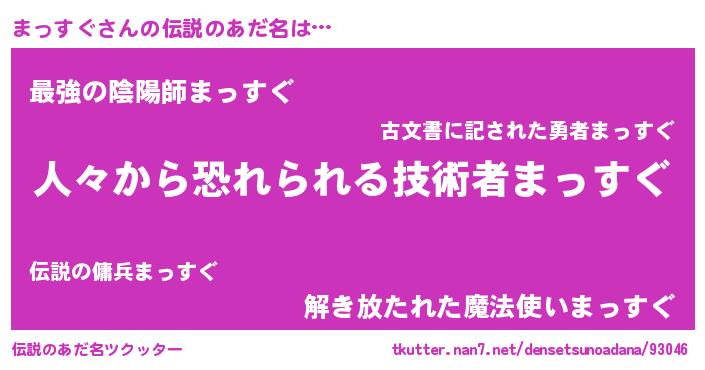 | ヒーロー風カッコイイあだ名 | 『友情の使者まっすぐ』『幻影騎士マッ』 |