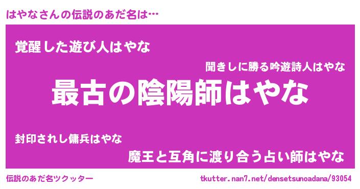 | 欧米人風あだ名 | 『アンジェラ・はやな』『ウサインはやな』 |