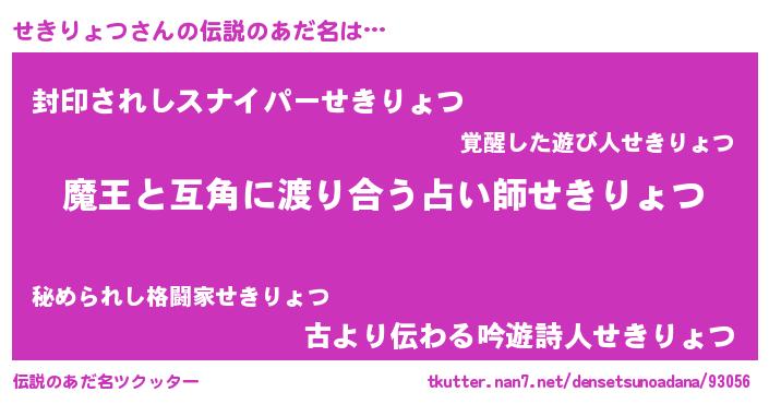 | ヘコむあだ名 | 『せきもー』『せきりょつ(苦笑)』 |
