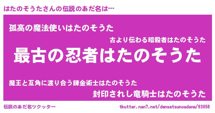 | 男性向けラノベタイトル風あだ名 | 『この素晴らしい世界にはたのそうたを!』 |
