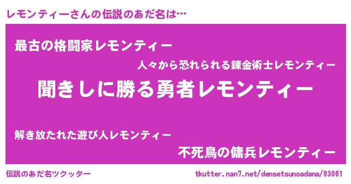 | 胡散臭い通販商品みたいなあだ名 | 『絶対に幸福をもたらす水素水…その名も「レモンティー」』 |