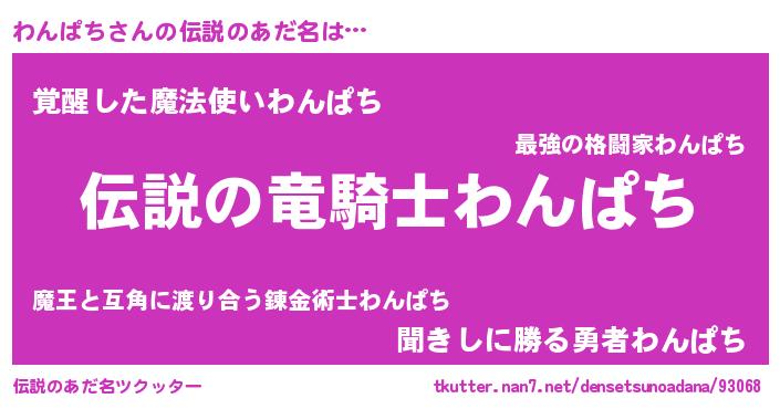 | 意味不明あだ名 | 『ペロリンわんぱち』『永久保存わんぱち』 |