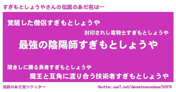 | ファンタジー風あだ名 | 『エターナルスギモトショウヤー』 |