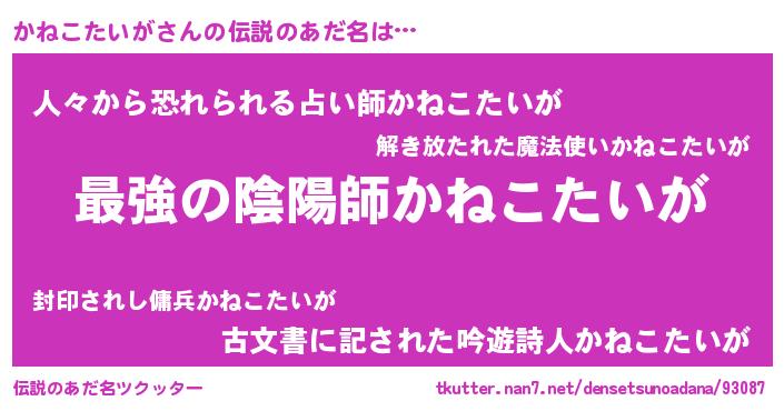 | 男性向けラノベタイトル風あだ名 | 『この素晴らしい世界にかねこたいがを!』 |