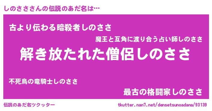 | 意味不明あだ名 | 『とにかく怪しいしのささ』 |