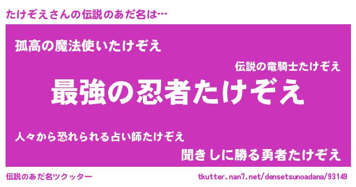 | ファンタジー風あだ名 | 『エターナルタケゾエー』『タケフェル』 |