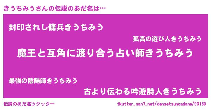 | ヒーロー風カッコイイあだ名 | 『慈愛の使者きうちみう』『仮面キウダー』 |