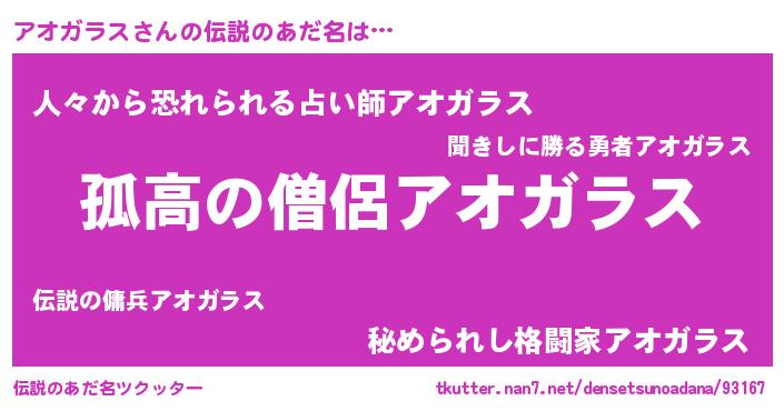| 意味不明あだ名 | 『とにかく怪しいアオガラス』 |