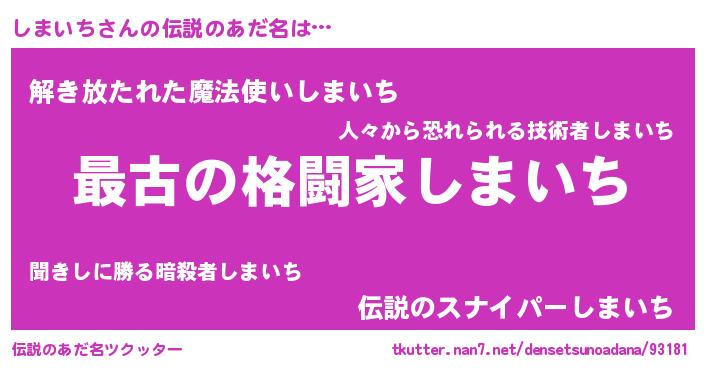 | 男性向けラノベタイトル風あだ名 | 『うちの娘の為ならば、俺はもしかしたらしまいちも倒せるかもしれない。』 |