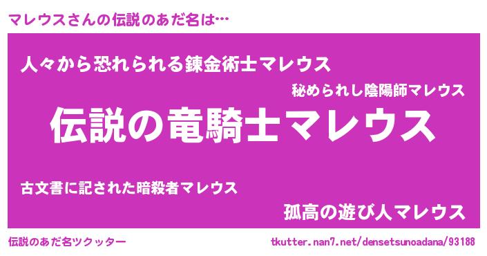| ヒーロー風カッコイイあだ名 | 『仮面マレダー』『スーパーマレウス』 |