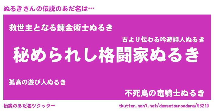 | ファンタジー風あだ名 | 『ゼヌルトゥ』『エターナルヌルキー』 |