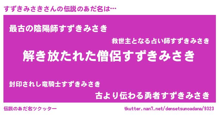 | 男性向けラノベタイトル風あだ名 | 『Re:すずきみさきから始める異世界生活』 |