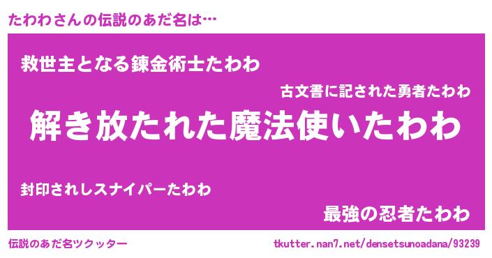 | ヒーロー風カッコイイあだ名 | 『仮面タワダー』『超時空戦士タワワ』 |