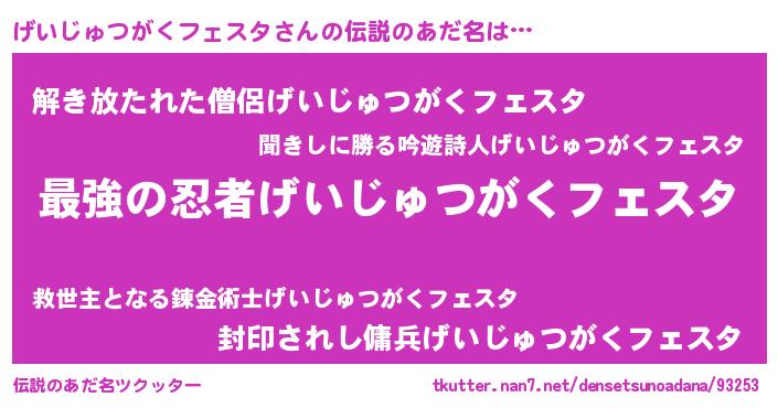 | 意味不明あだ名 | 『げいじゅつがくフェスタフォーエバー』 |