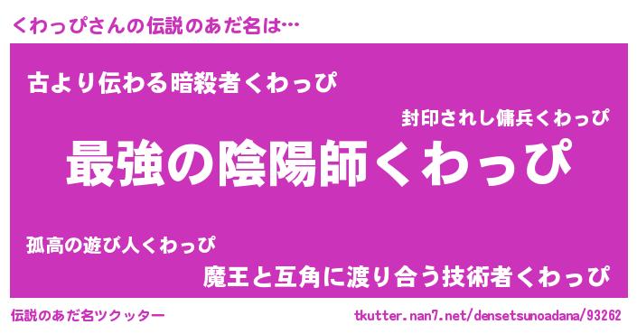 | 胡散臭い通販商品みたいなあだ名 | 『あなたにだけ特別に提供する世界で10本だけ現存している希少なブランデー…その名も「くわっぴ」』 |