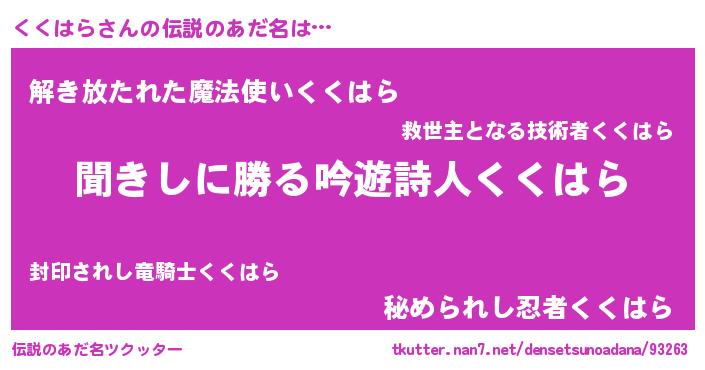 | 意味不明あだ名 | 『自称くくはら』『永久保存くくはら』 |